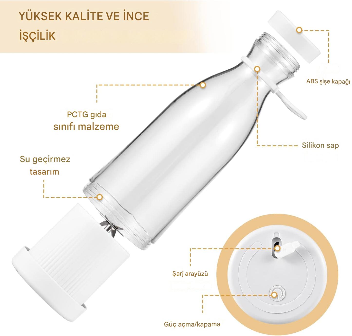 Güçlü Performanslı USB Şarjlı Smoothie Blender